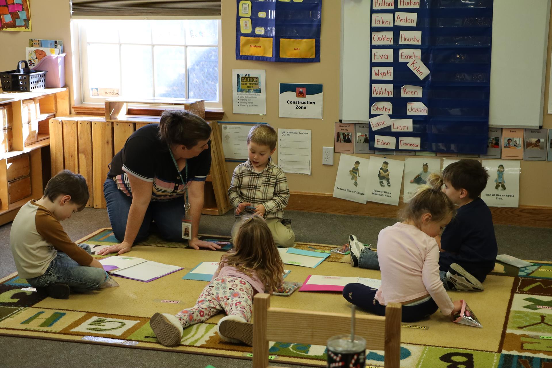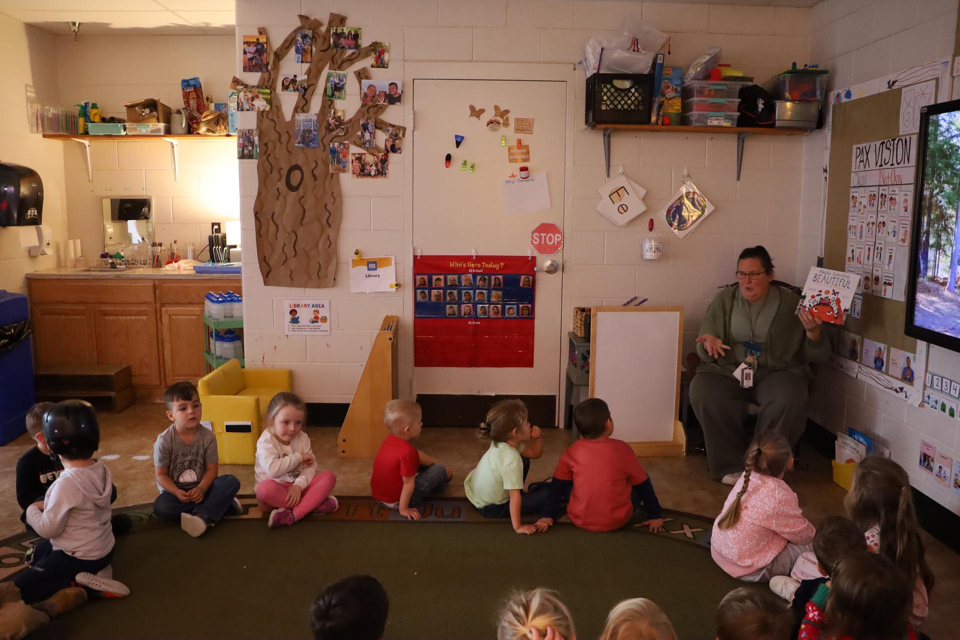 Mrs. Johnston leading PreK students at French Creek Elementary into story time magic. |